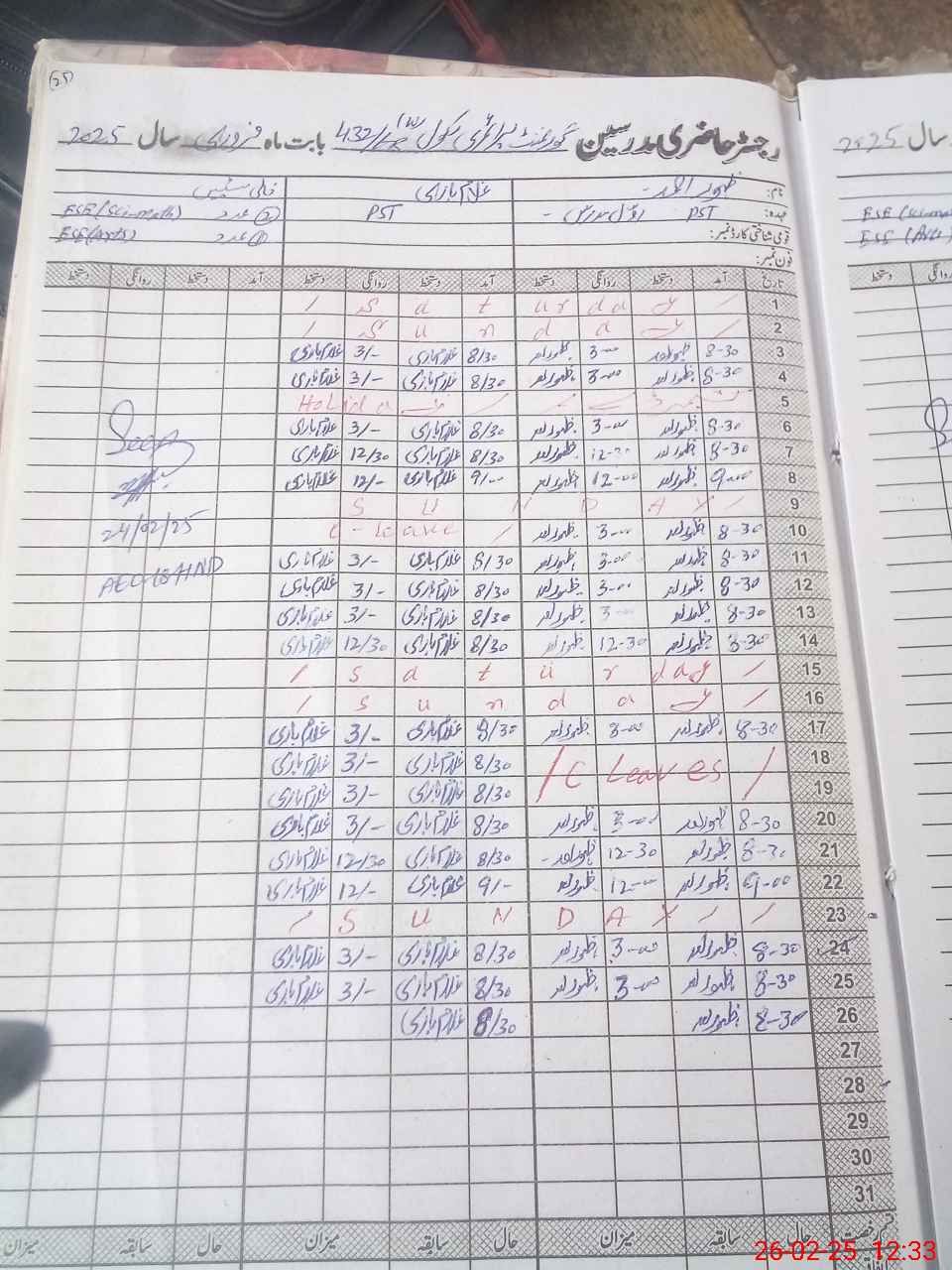| Leave | Duty | Absent | Maternity | Medical | Ex- Pak |