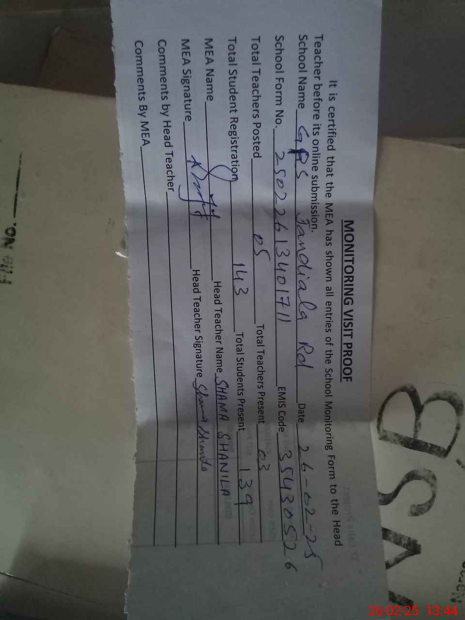 | EMIS Code: 35430526 | Name of School: GPS MERAJ PURA | |||