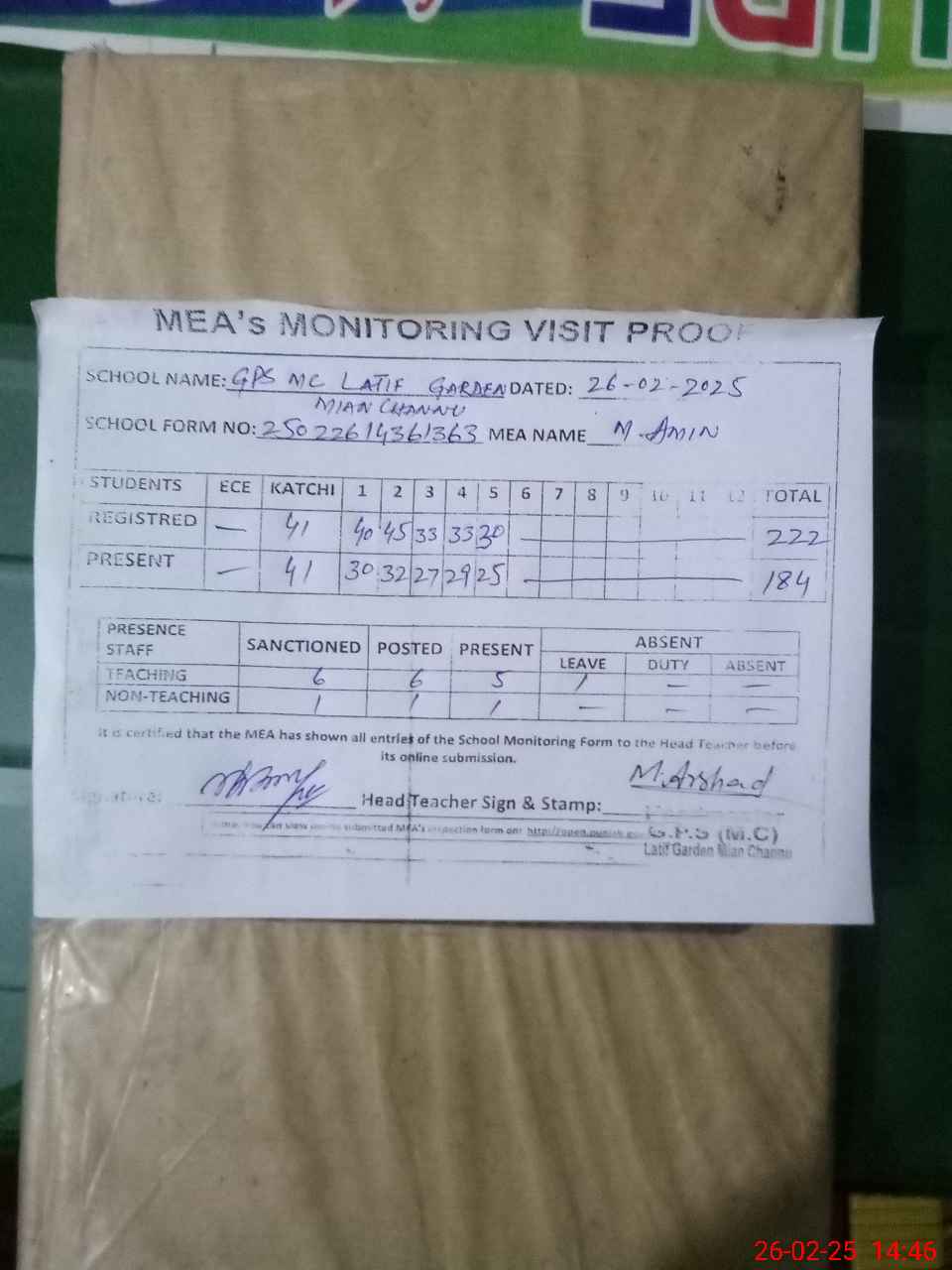 | EMIS Code: 36430135 | Name of School: GPS MC LATIF GARDEN SADIQ COLONY MIAN CHANNU | |||