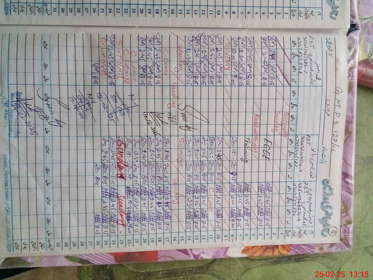 | CNIC | Full Name | Designation | R/C | Absence During Last Calender Month |
