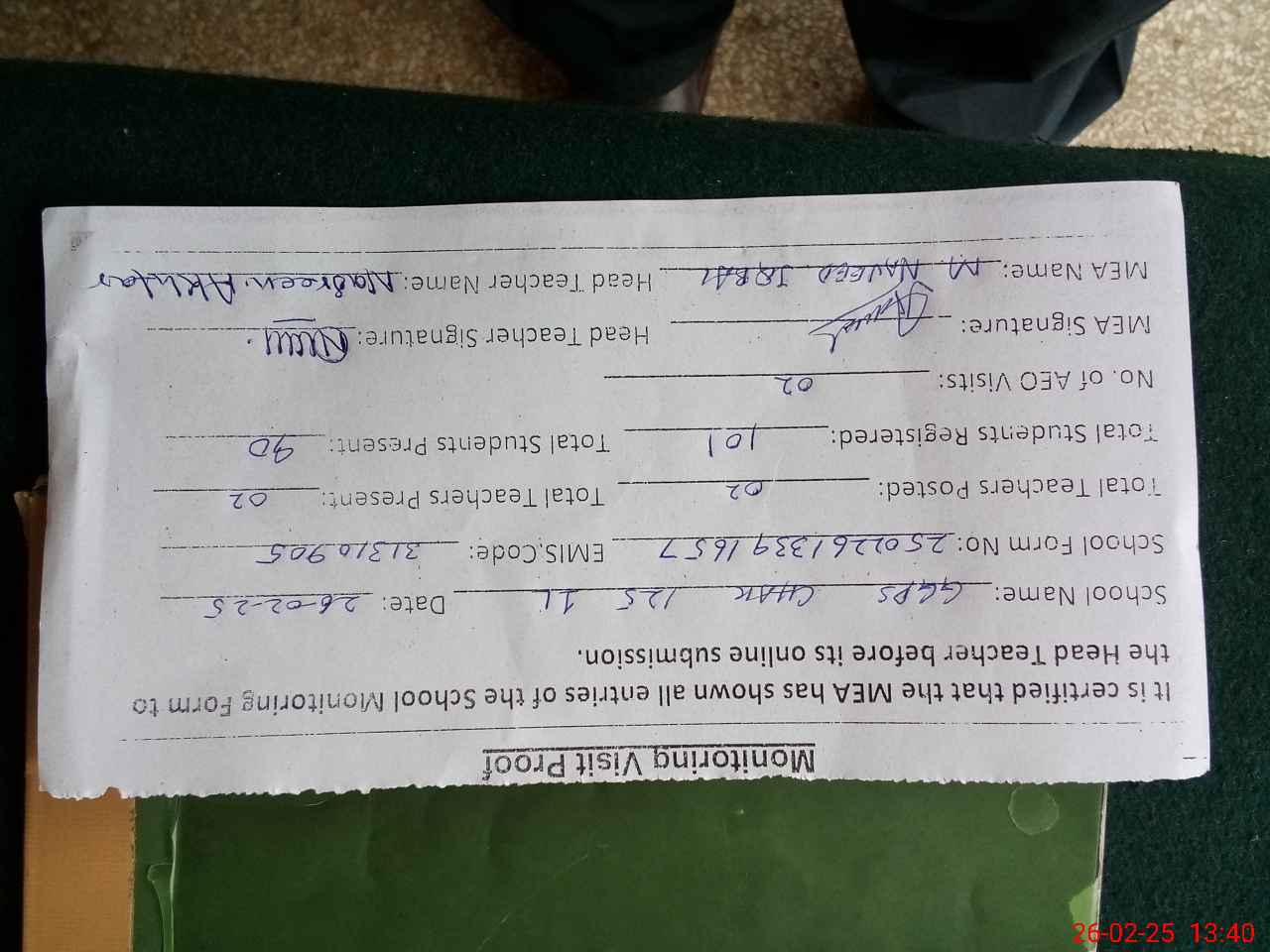 | Certified that this School was Inspected by the Undersigned MEA/DMO Today and the Information Stated Above is as Per Record. | |||||