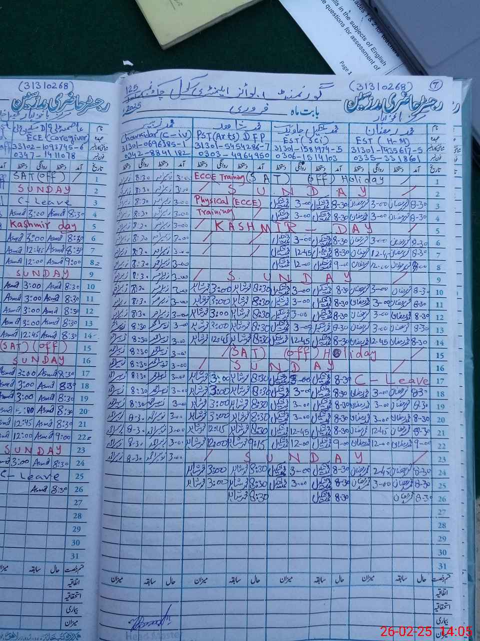 | Name: Mu**** Ra**** Designation: (School Headmaster's/Headmistress's) EST Phone/Cell Number: 03**** |