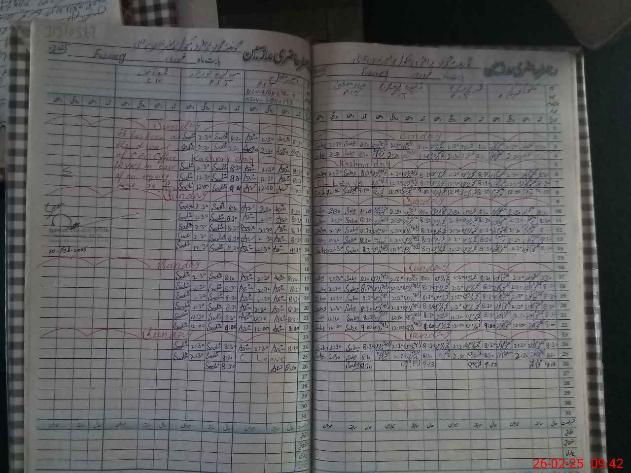 | Monitoring Date: 26-02-2025 | Start Time: 26-02-2025 09:01 AM | End Time: 26-02-2025 09:44 AM | Name of MEA: Ab**** Qa**** | |