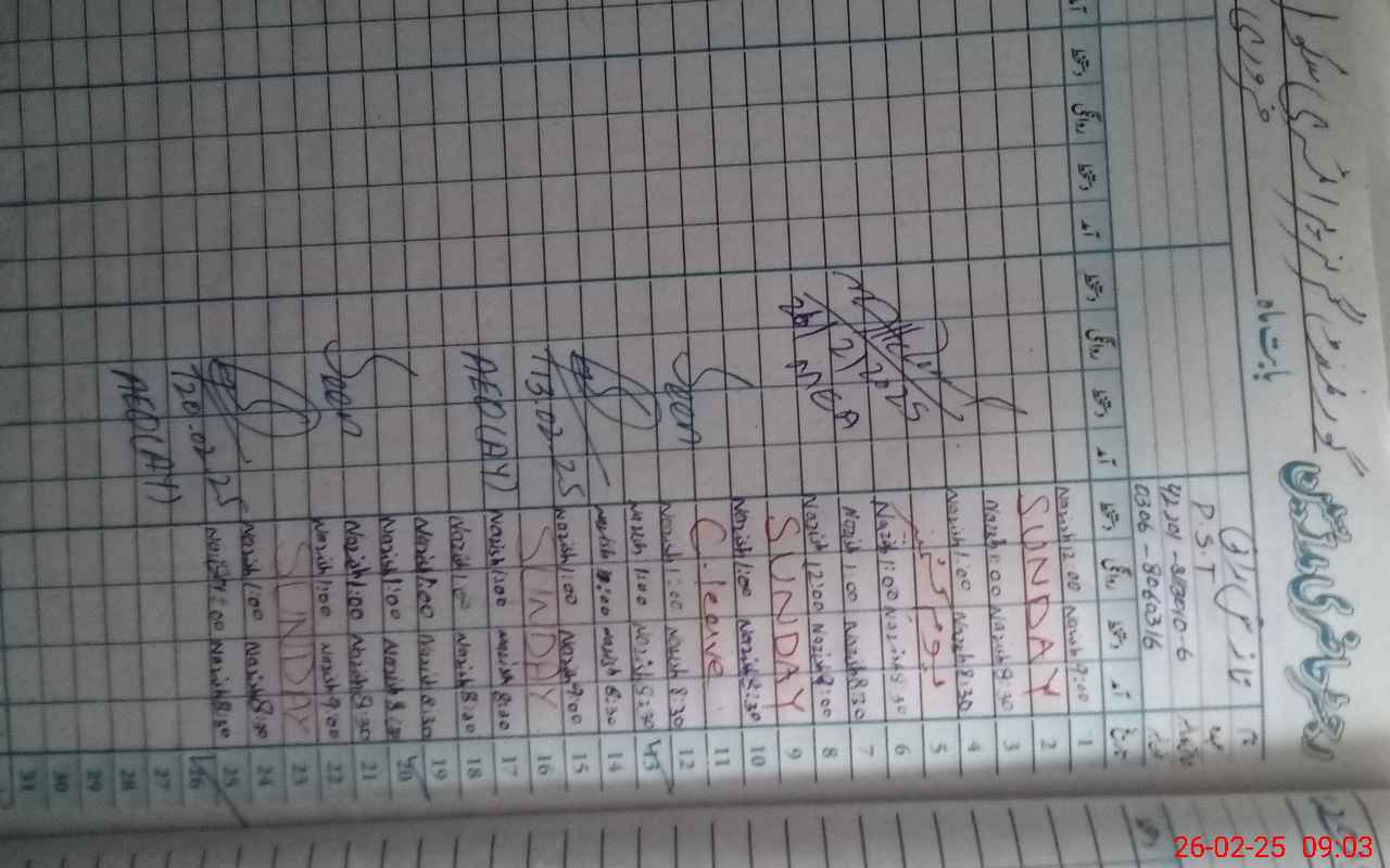| Name: NA**** RA**** Designation: (School Headmaster's/Headmistress's) PST Phone/Cell Number: 03**** |