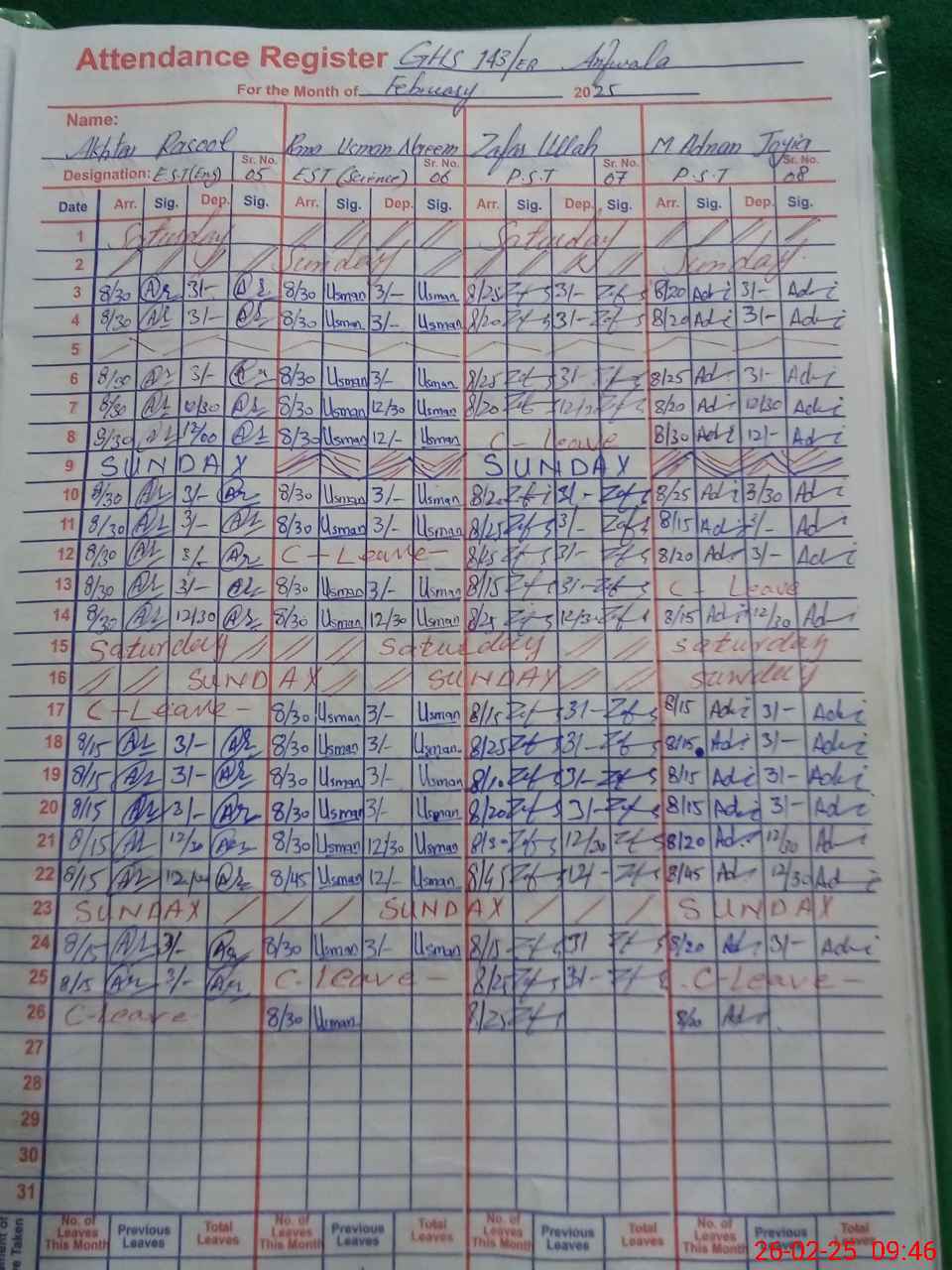 | 36**** | Na**** Iq**** | PST | Regular | 2 | 0 | 0 | 0 | 0 | 0 | 0 | 0 | 2 | Maternity |