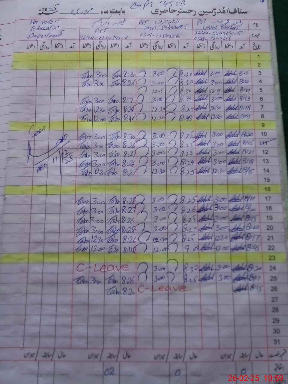 | Name: RA**** MA**** Designation: (School Headmaster's/Headmistress's) PST Phone/Cell Number: 03**** |