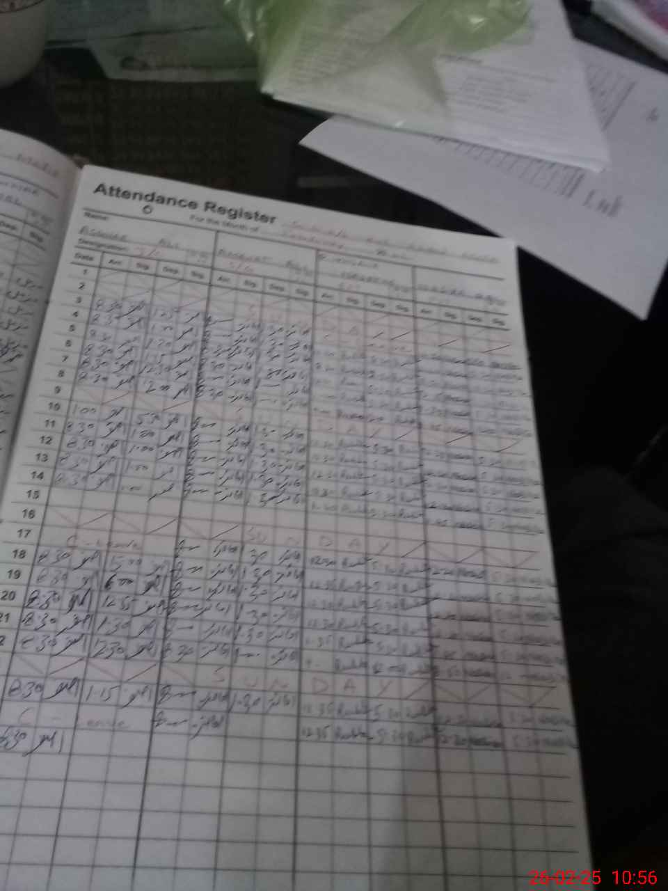 | CNIC | Full Name | Designation | R/C | Absence During Last Calender Month |