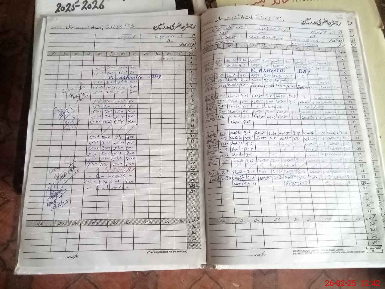 | CNIC | Full Name | Designation | R/C | Absence During Last Calender Month |