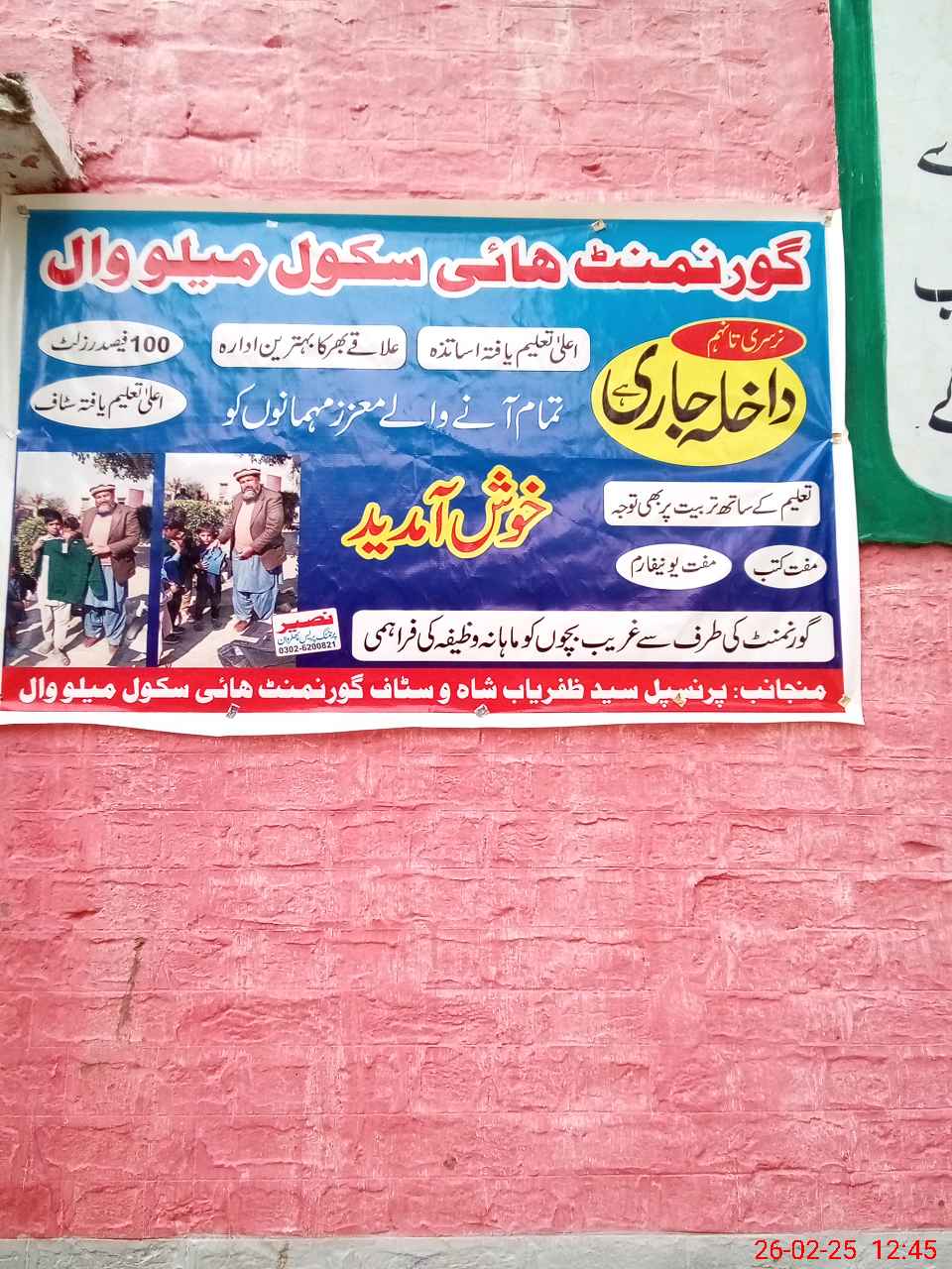 | Name: Sy**** Mu**** Za**** Designation: (School Headmaster's/Headmistress's) Inch HEADMASTER Phone/Cell Number: 03**** |