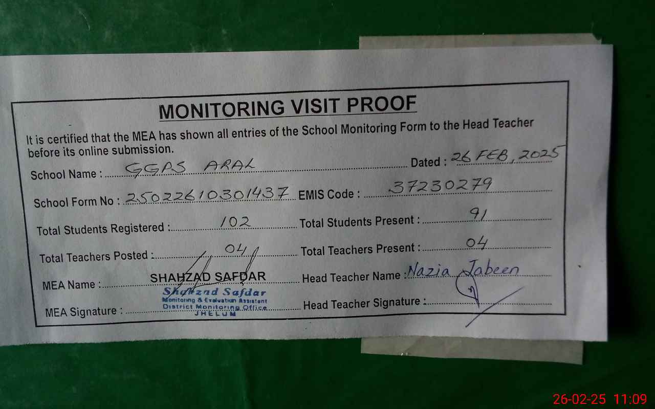 | EMIS Code: 37230279 | Name of School: GGPS ARAL | |||