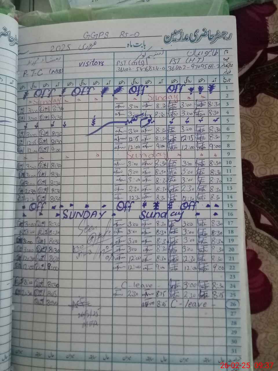 | Leave | Duty | Absent | Maternity | Medical | Ex- Pak |