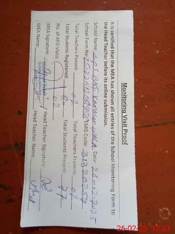 | EMIS Code: 31320257 | Name of School: GPS KAMALAY WALA | |||