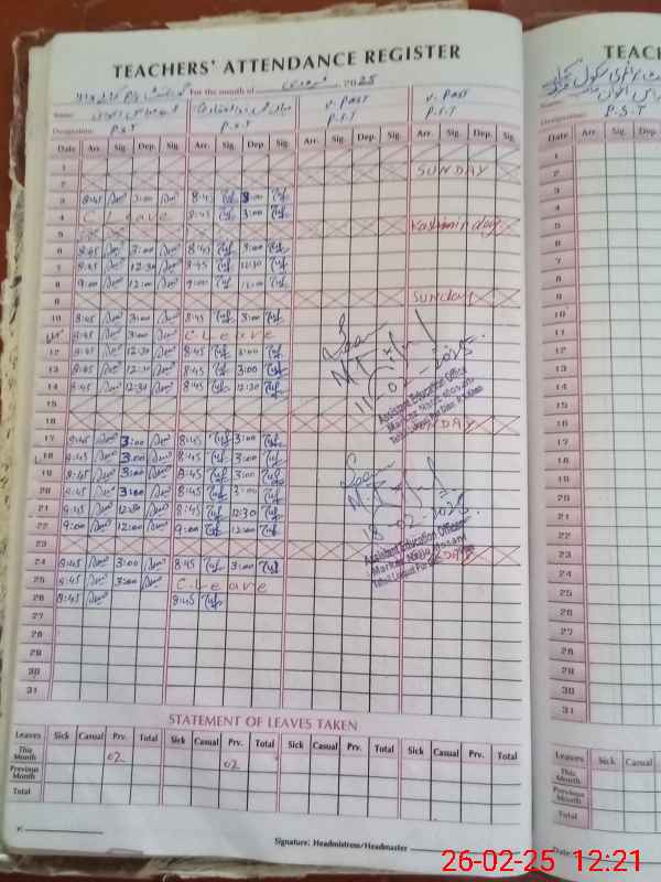 | Name: M.AB**** Designation: (School Headmaster's/Headmistress's) PST Phone/Cell Number: 03**** |