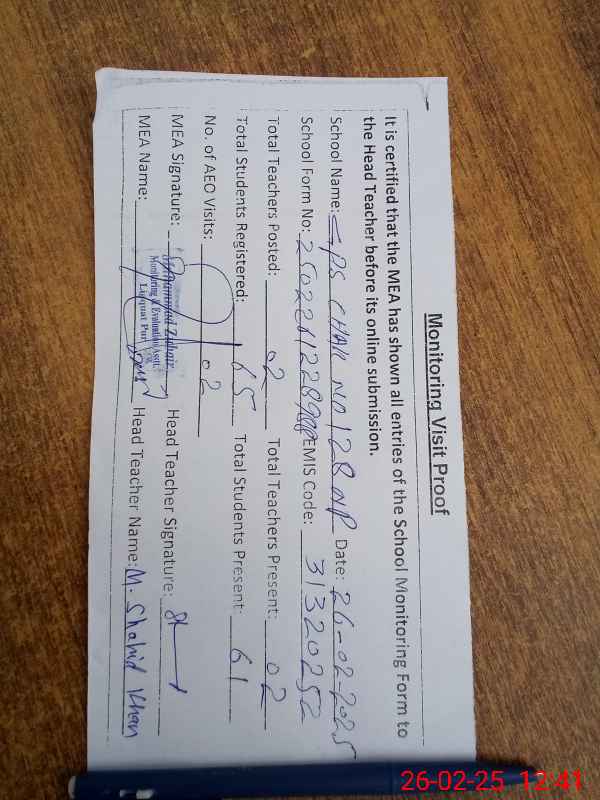 | Name: Mu**** Sh**** Kh**** Designation: (School Headmaster's/Headmistress's) PST/PTC/JV Phone/Cell Number: 03**** |