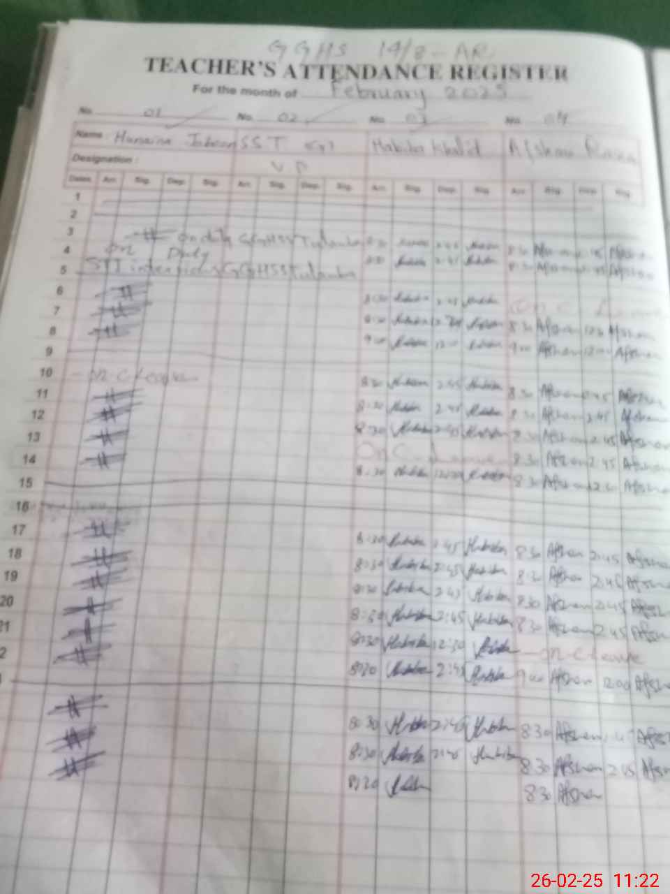 | 36**** | Ra**** Ir**** | Regular | 2 | 0 | 0 | 0 | 0 | 0 | 0 | 0 | 2 | Absent (Un-Authorized) | |