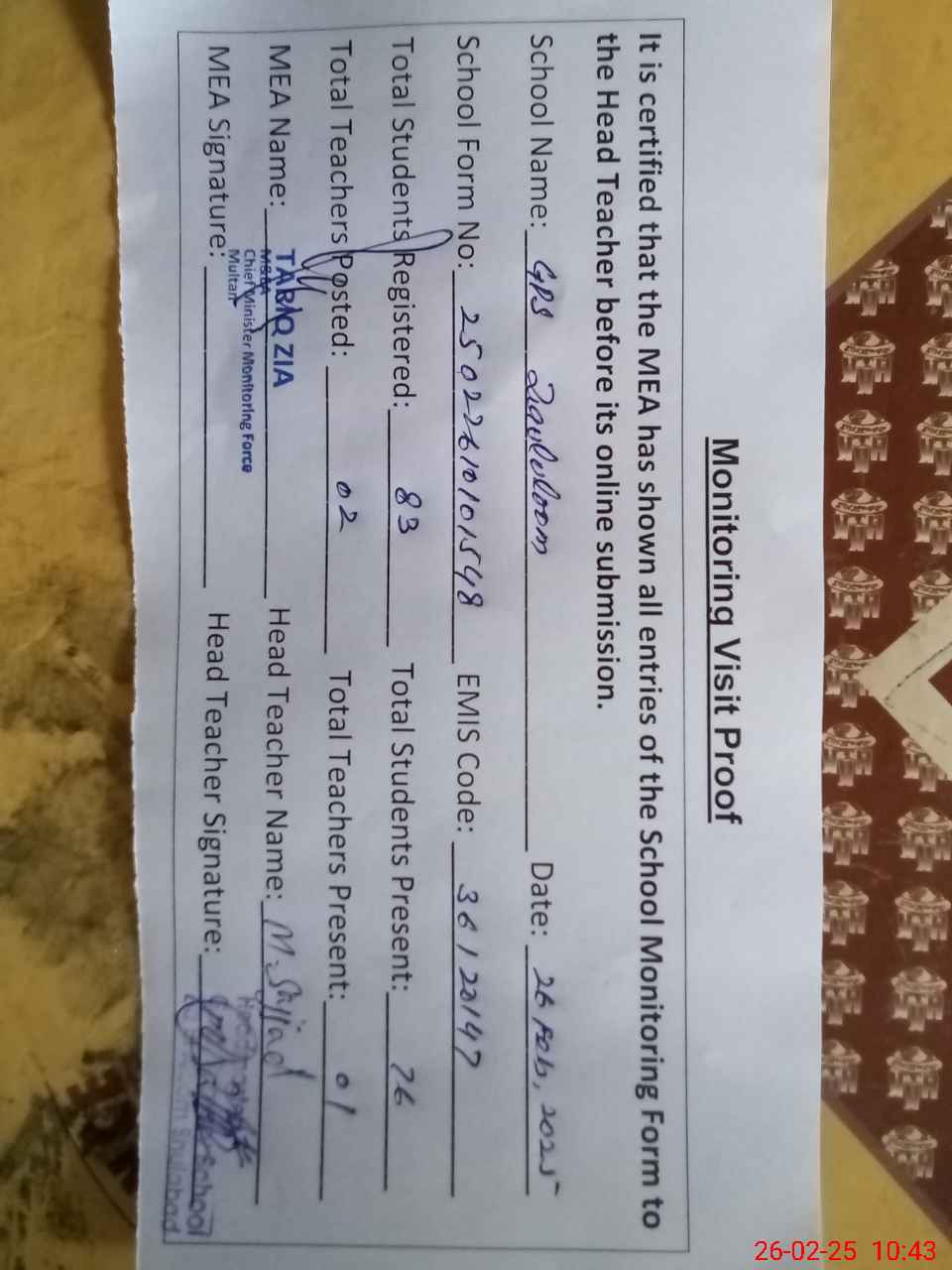 | EMIS Code: 36120147 | Name of School: GPS ZIA-UL-ULOOM MOHALLA HAFIZABAD | |||