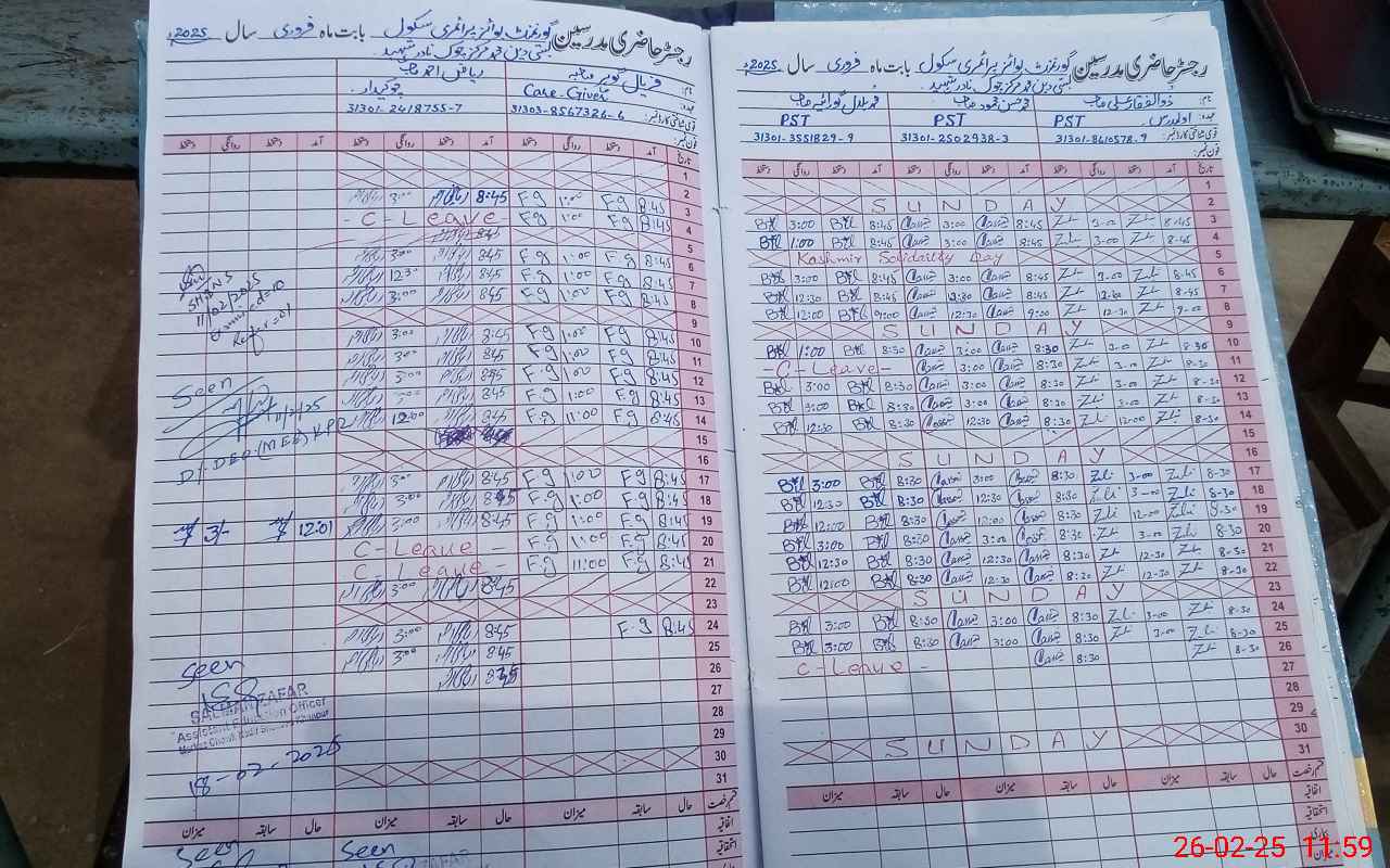 | Name: Zu**** Al**** Designation: (School Headmaster's/Headmistress's) PST Phone/Cell Number: 03**** |