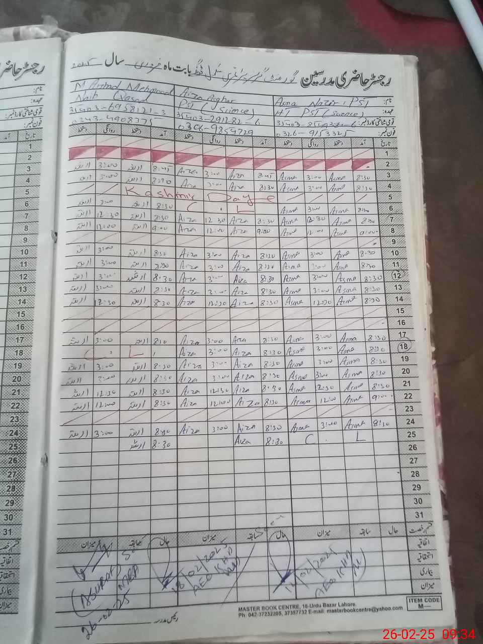 | CNIC | Full Name | Designation | R/C | Absence During Last Calender Month |