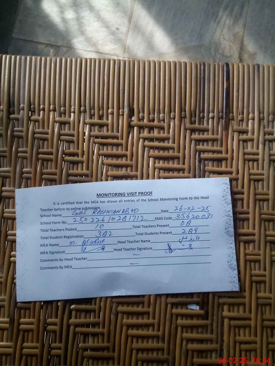 | EMIS Code: 35620031 | Name of School: GHS REHMAN ABAD | |||