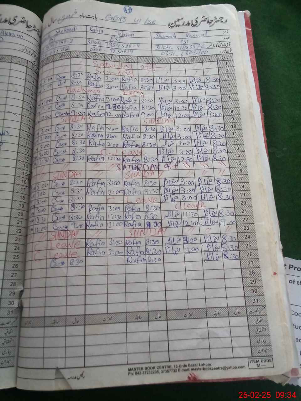 | CNIC | Full Name | Designation | R/C | Absence During Last Calender Month |