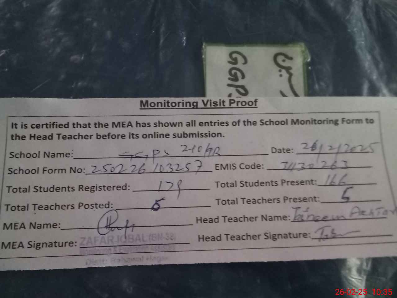 | EMIS Code: 31130263 | Name of School: GGPS CHAK NO. 210/9-R | |||