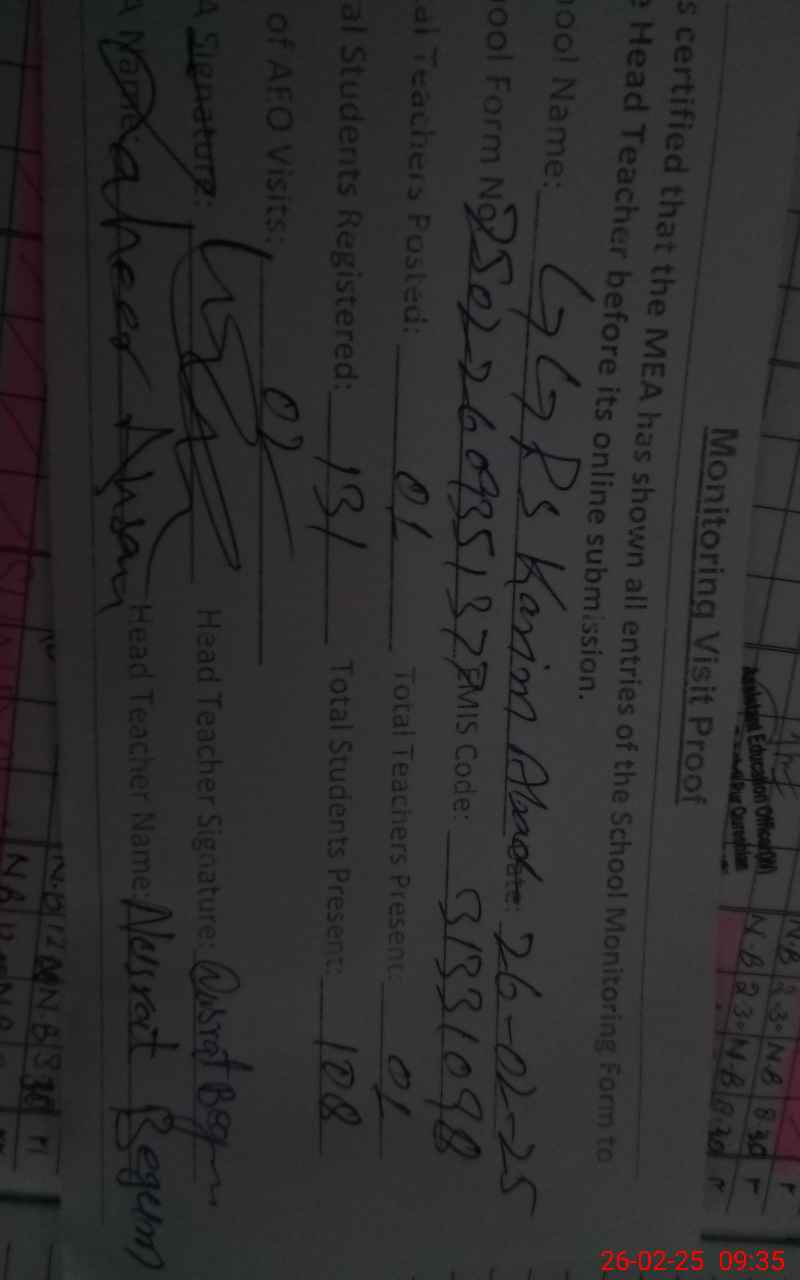 | EMIS Code: 31331098 | Name of School: GGPS KARIM ABAD | |||