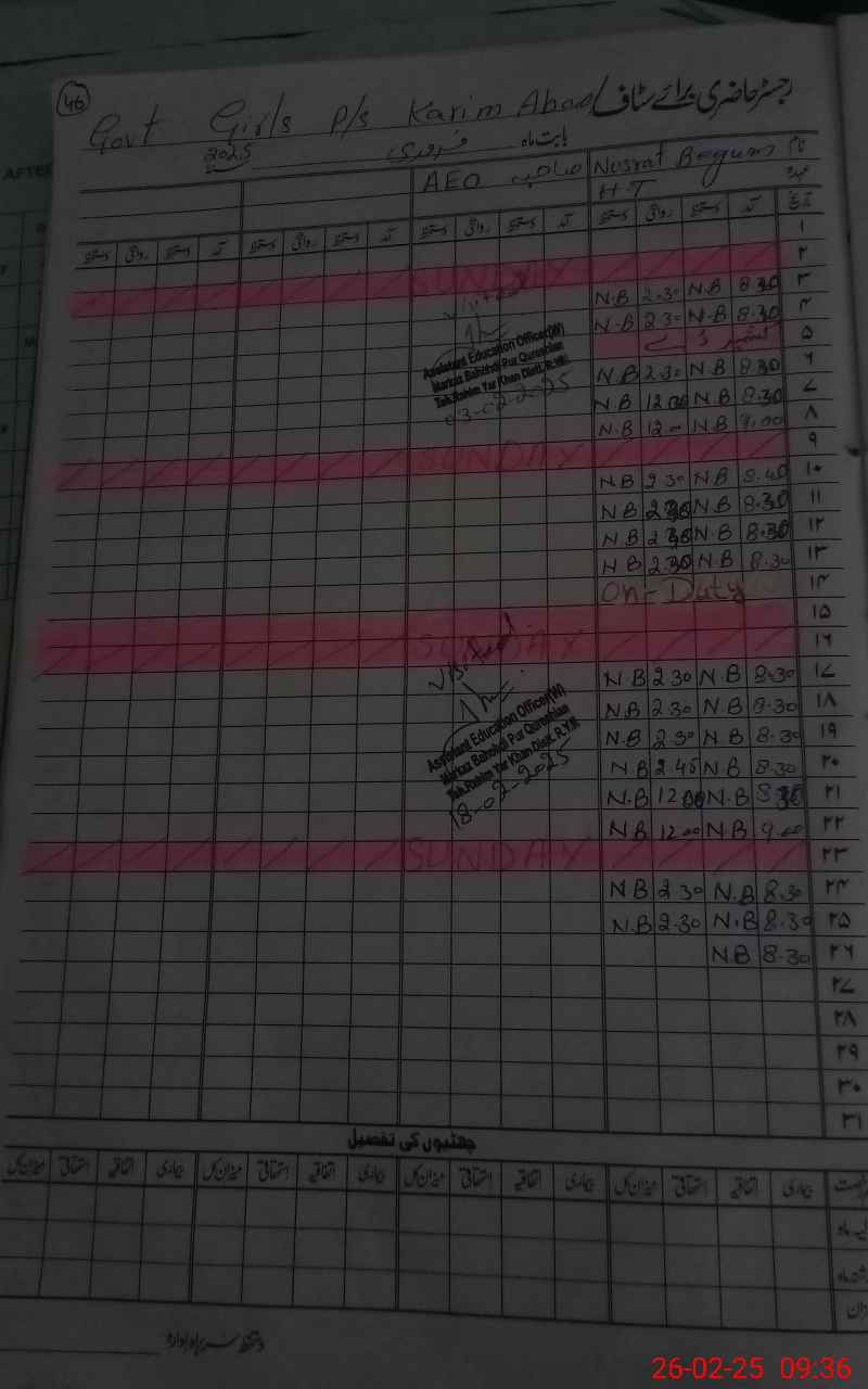 | District: RAHIMYAR KHAN | Tehsil: RAHIMYAR KHAN | Markaz: BAHODIPUR QURESHIAN-FEMALE | Level: Primary | |