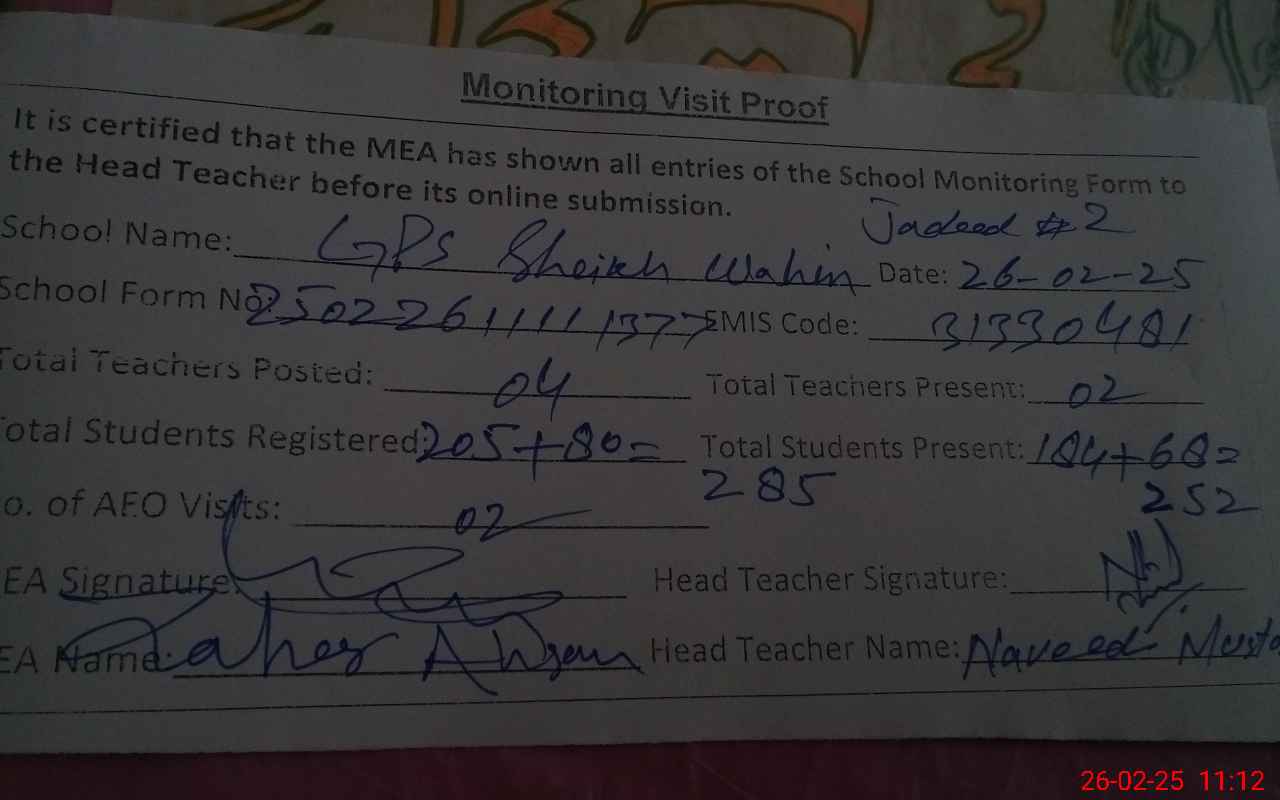 | EMIS Code: 31330481 | Name of School: GPS SHEIKH WAHIN JADEED | |||