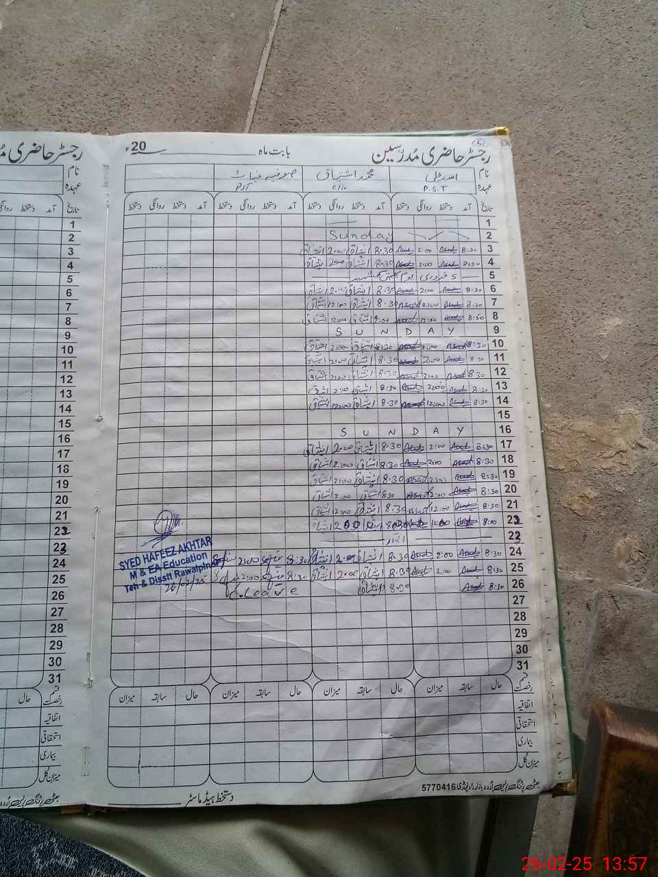 | CNIC | Full Name | Designation | R/C | Absence During Last Calender Month |