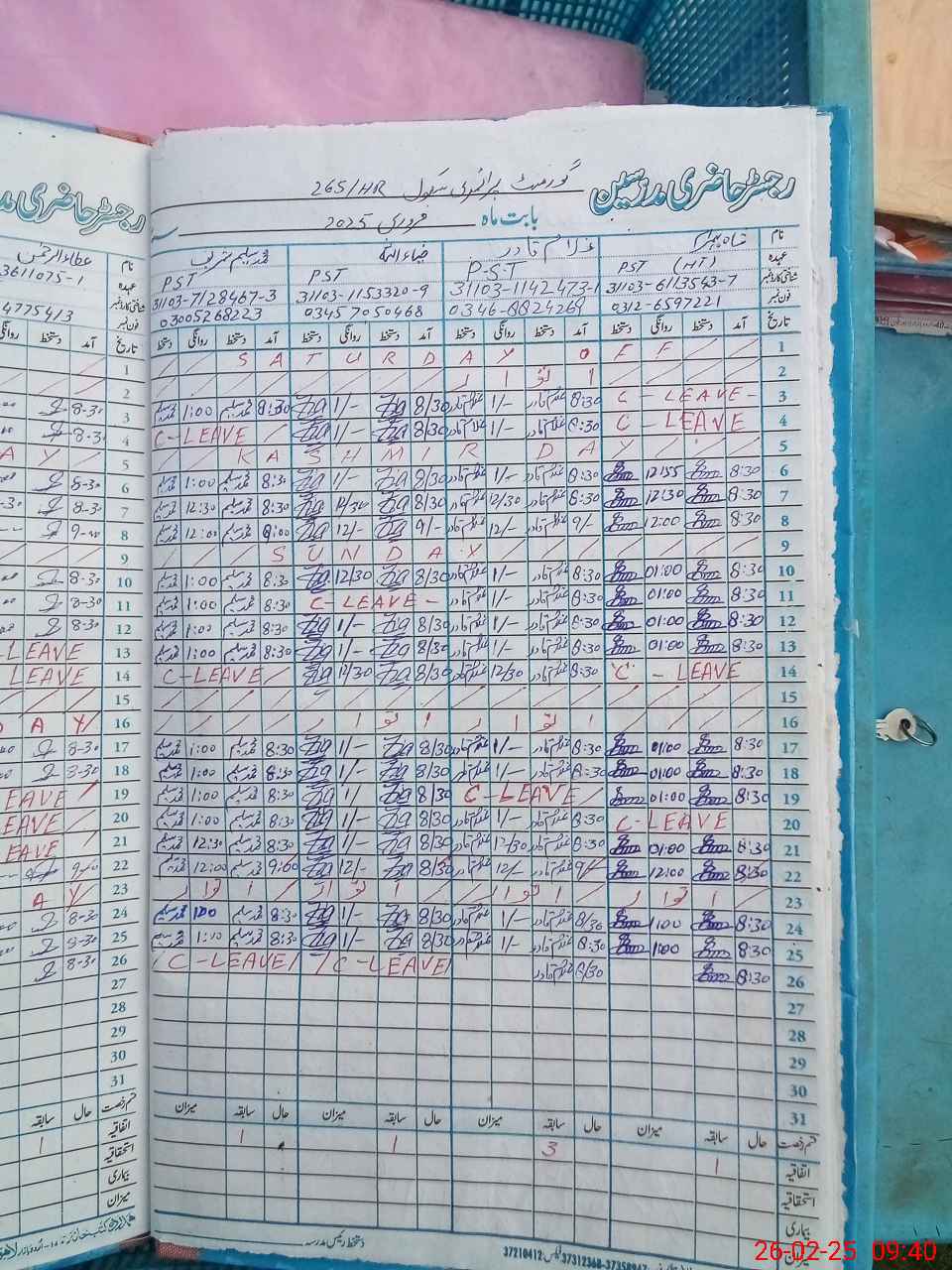 | Name: Sh**** Be**** Designation: (School Headmaster's/Headmistress's) PTC Phone/Cell Number: 03**** |