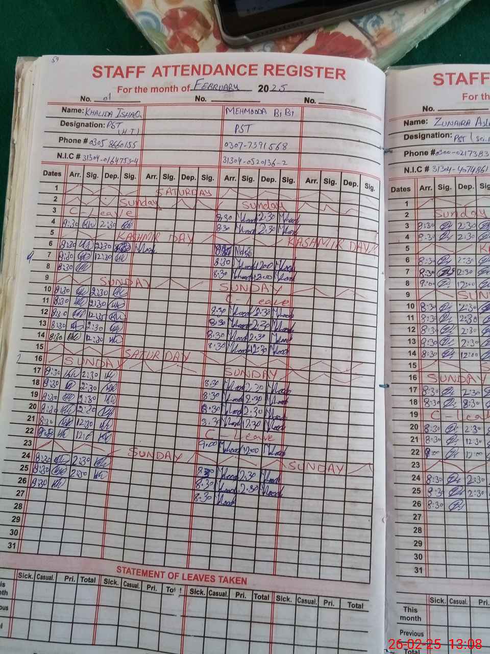| Name: Kh**** Is**** Designation: (School Headmaster's/Headmistress's) PST Phone/Cell Number: 03**** |