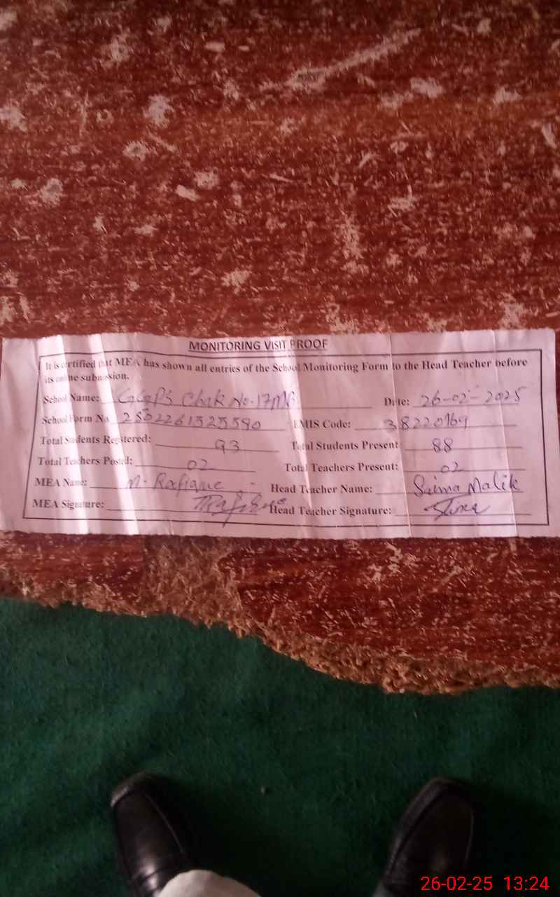 | EMIS Code: 38220169 | Name of School: GGPS CHAK NO 17 MB | |||