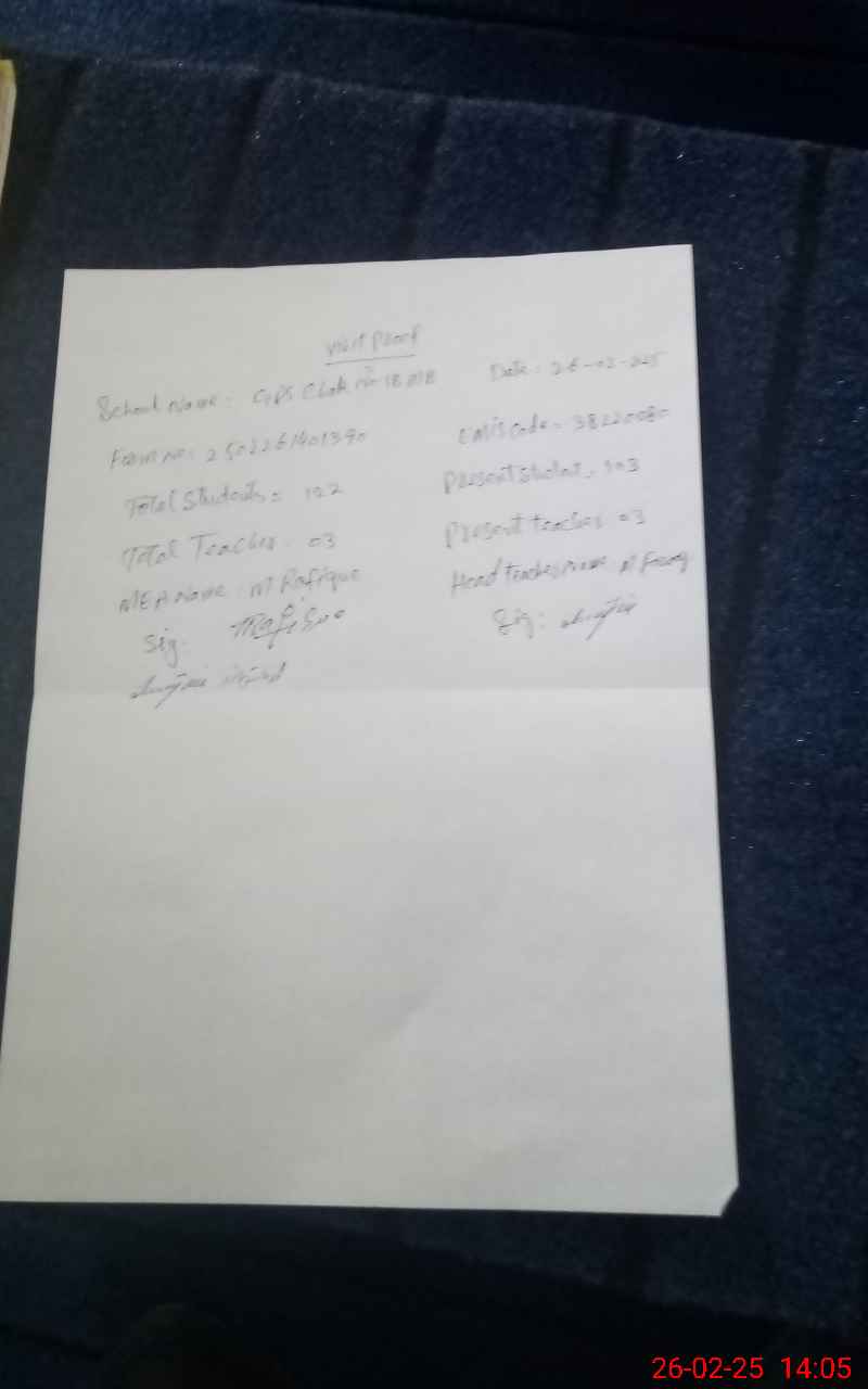 | EMIS Code: 38220080 | Name of School: GPS CHAK NO. 18/MB | |||