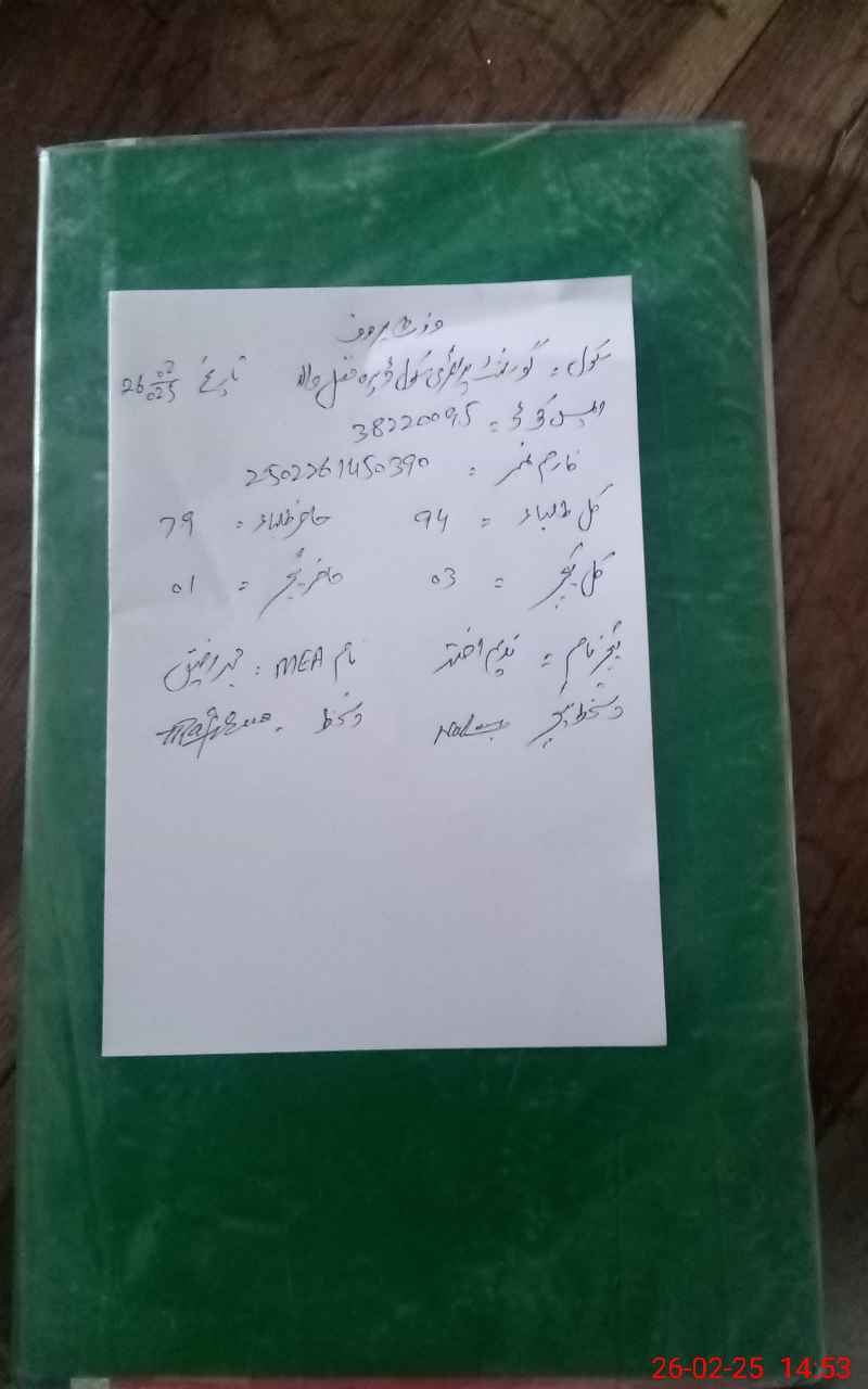 | EMIS Code: 38220095 | Name of School: GPS DERA FAZAL WALA | |||