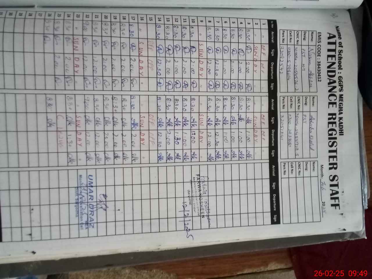 | Name: NA**** AK**** Designation: (School Headmaster's/Headmistress's) ESE (ARTS) Phone/Cell Number: 03**** |
