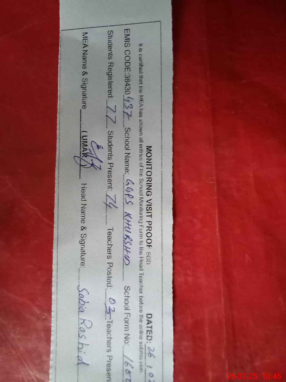 | EMIS Code: 38430437 | Name of School: GGPS KHURSHID | |||