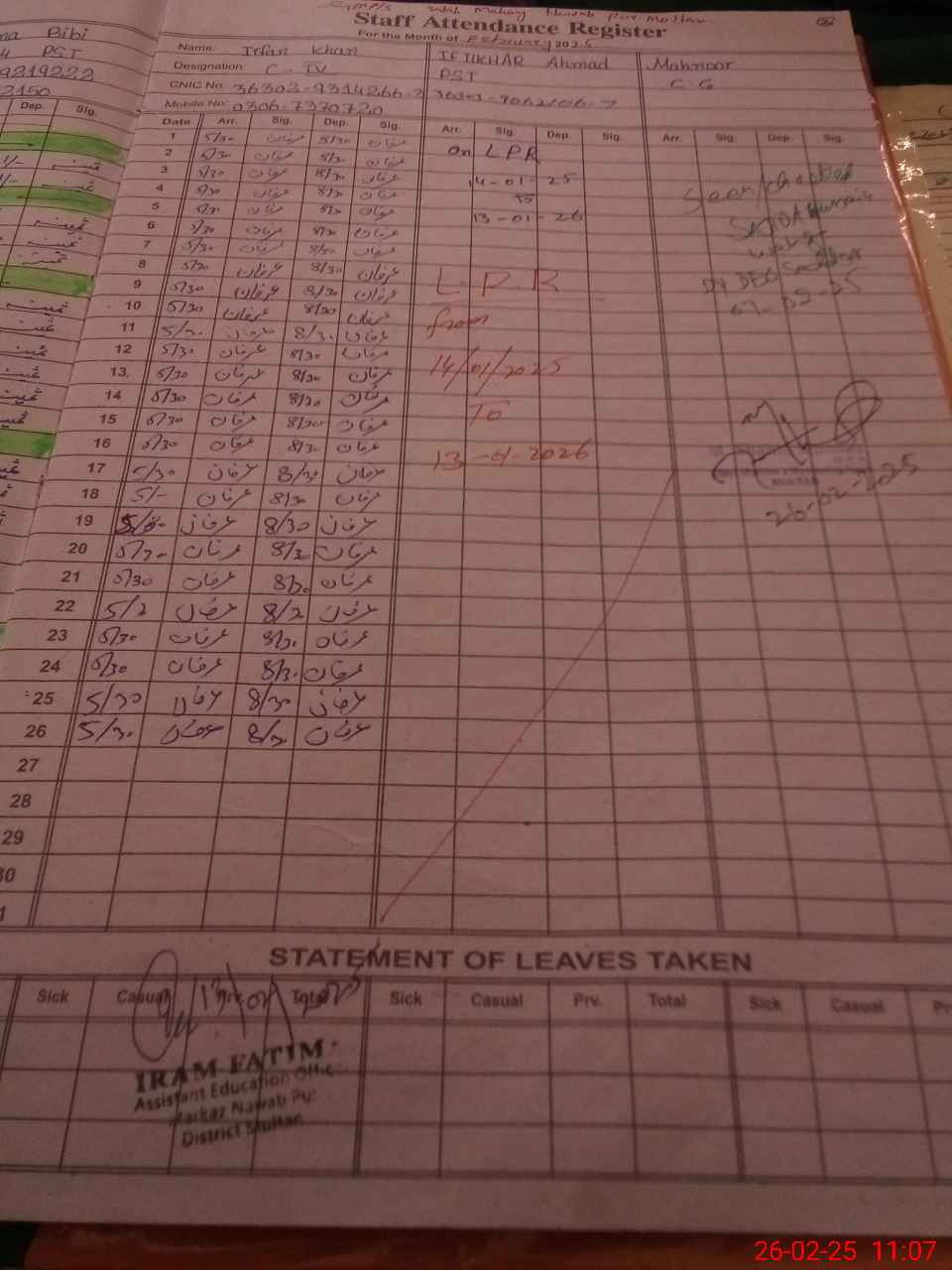 | Name: Ab**** Designation: (School Headmaster's/Headmistress's) PST/PTC/JV Phone/Cell Number: 03**** |