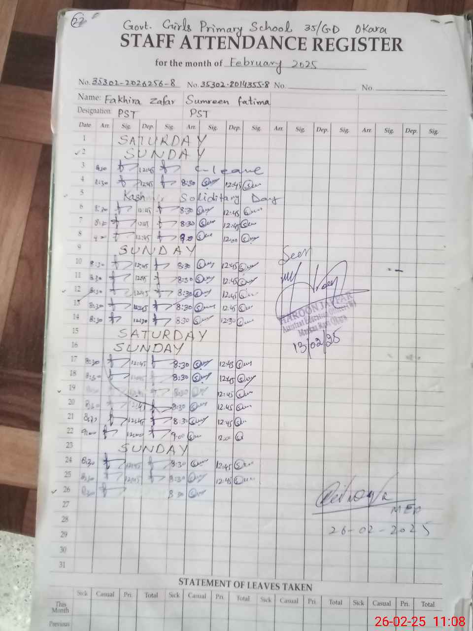 | Name: Fa**** Za**** Designation: (School Headmaster's/Headmistress's) HEADMASTER Phone/Cell Number: 03**** |