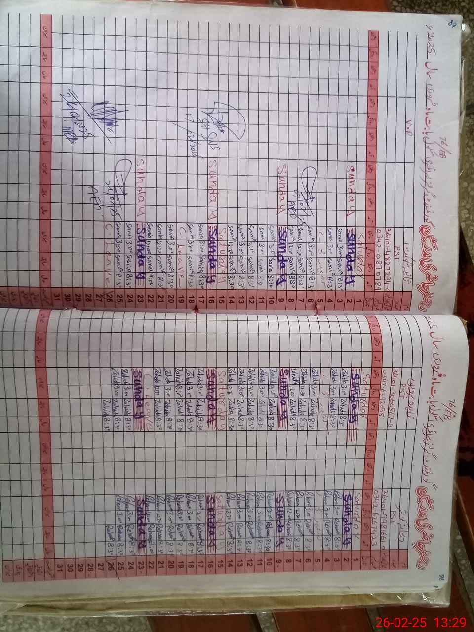 | CNIC | Full Name | Designation | R/C | Absence During Last Calender Month |