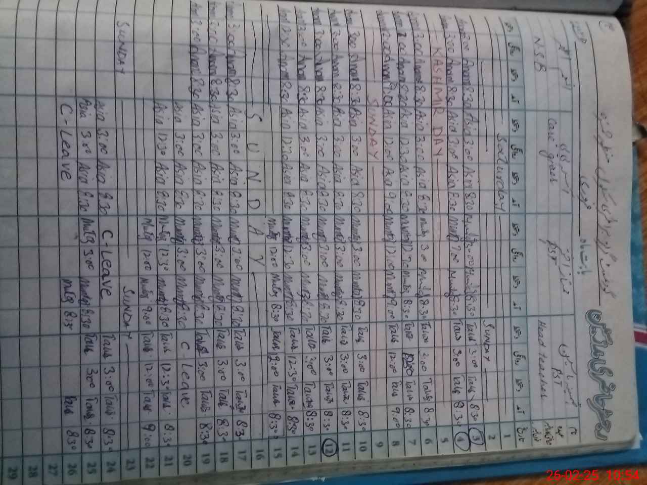 | CNIC | Full Name | Designation | R/C | Absence During Last Calender Month |