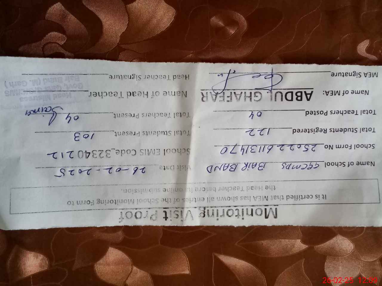 | Monitoring Date: 26-02-2025 | Start Time: 26-02-2025 11:31 AM | End Time: 26-02-2025 12:16 PM | Name of MEA: Ab**** Gh**** | |
