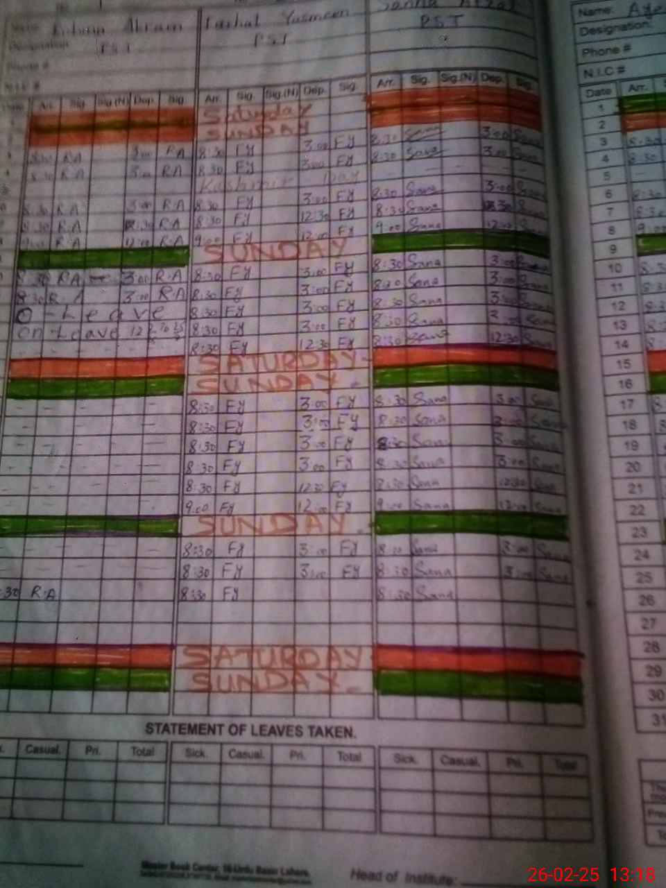 | 38**** | Sa**** Si**** Kh**** | PST | Temporary | 1 | 0 | 0 | 0 | 0 | 0 | 0 | 0 | 1 | Casual |