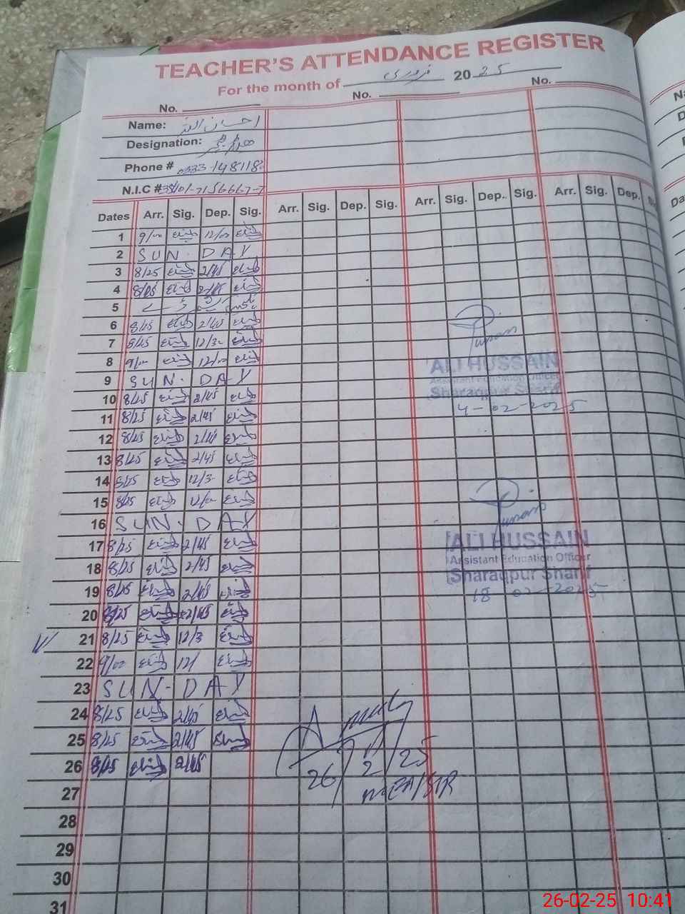 | Name: IH**** UL**** Designation: (School Headmaster's/Headmistress's) PTC/JV Phone/Cell Number: 03**** |