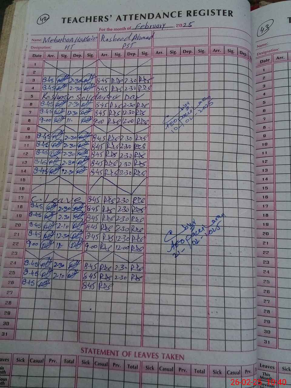 | Name: ME**** HU**** Designation: (School Headmaster's/Headmistress's) PST Phone/Cell Number: 03**** |