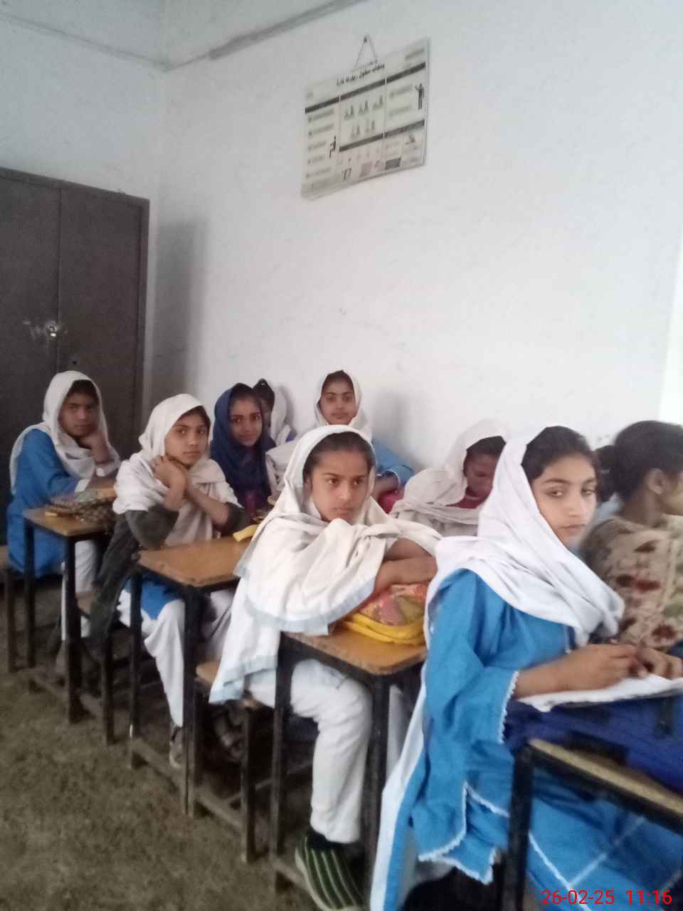 | Total no. of Classrooms: 2 No. of Classrooms Used for Teaching: 2 No. of Classrooms Storing Old Furniture, FTBs, etc: 0Comments if Any: Satisfactory |
