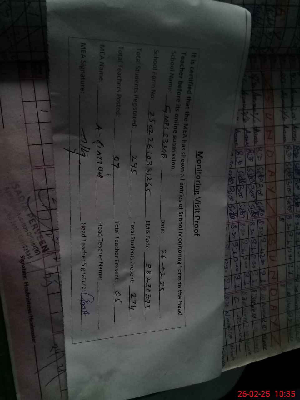 | EMIS Code: 38230475 | Name of School: GMPS CHAK NO. 23 MB | |||