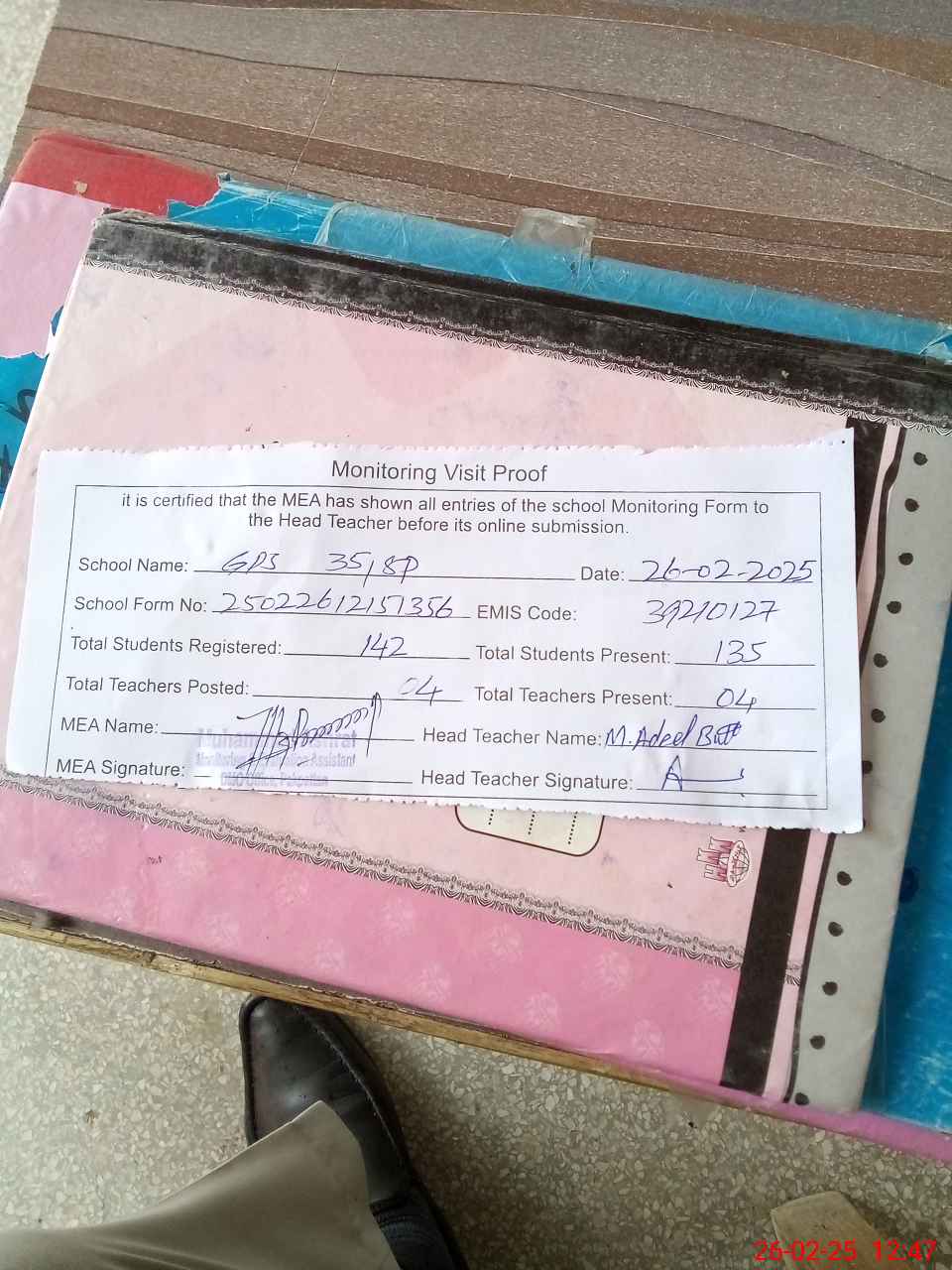 | EMIS Code: 39210127 | Name of School: GPS 35 SP | |||