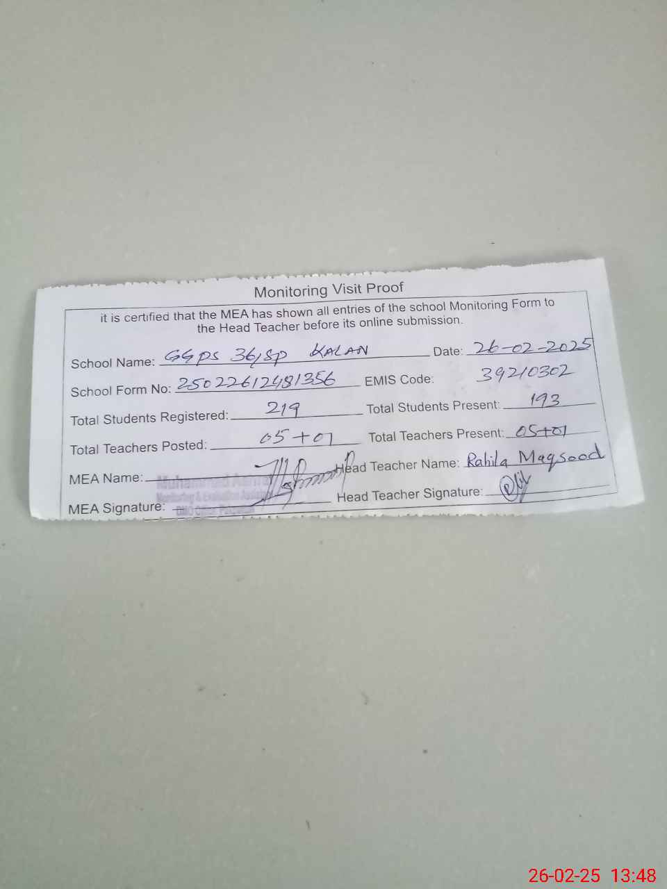 | EMIS Code: 39210302 | Name of School: GGPS 36/SP KALAN | |||