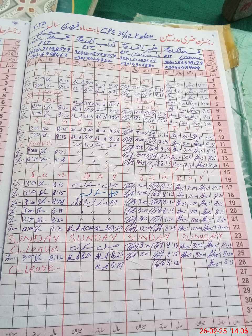 | CNIC | Full Name | Designation | R/C | Absence During Last Calender Month |