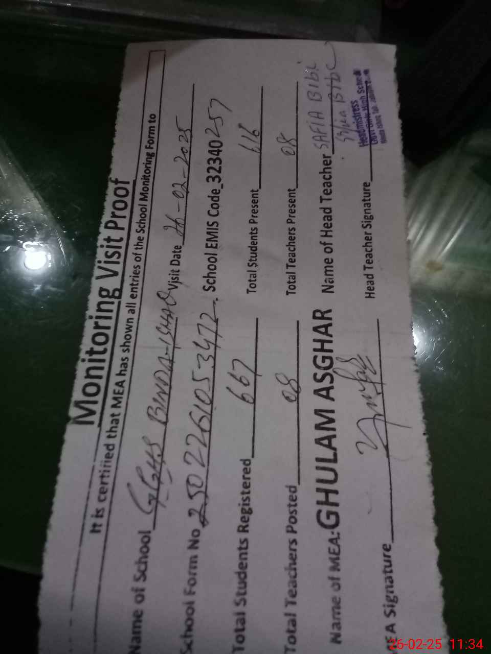 | EMIS Code: 32340257 | Name of School: GGHS BINDA ISHAQ | |||
